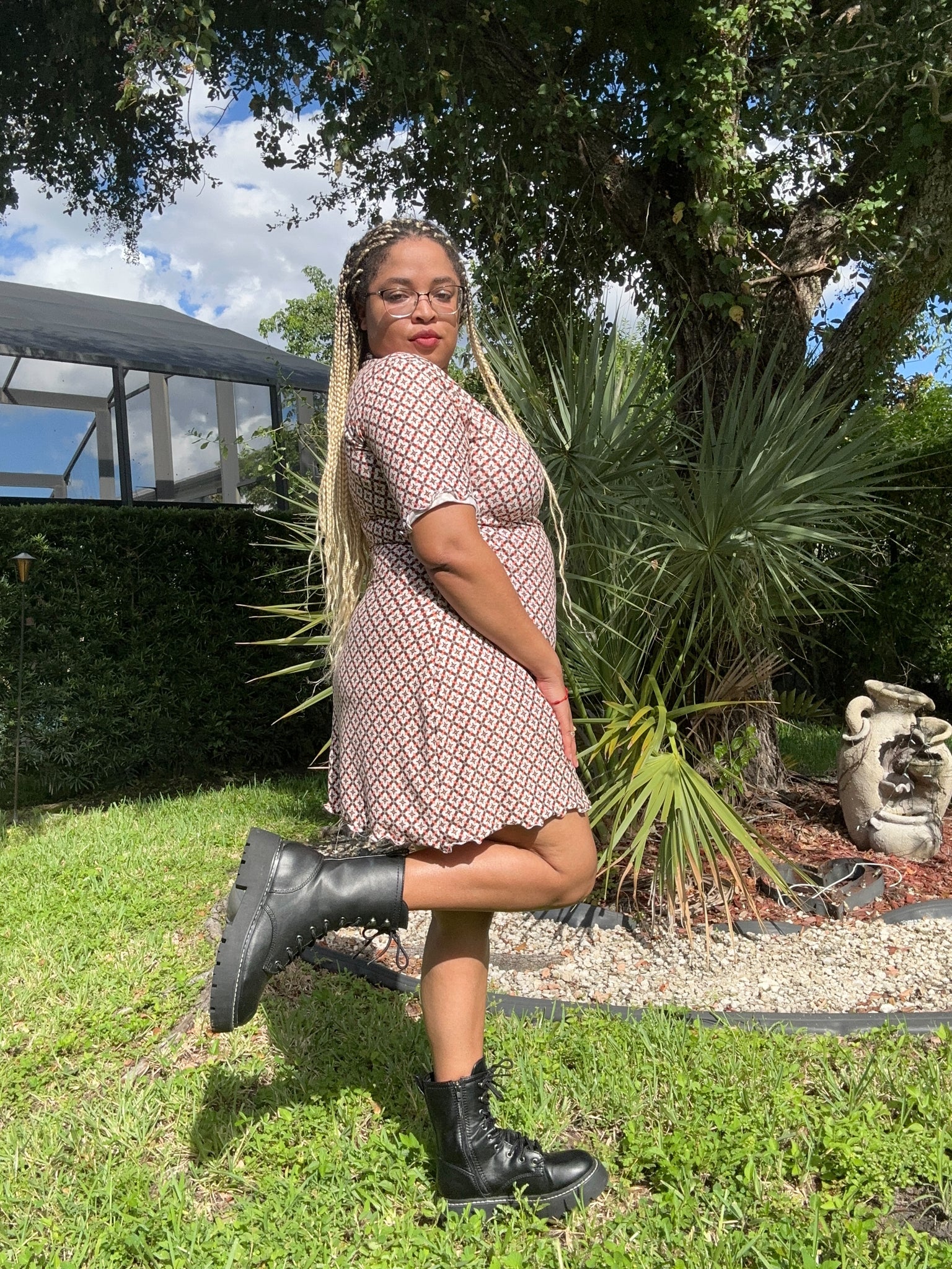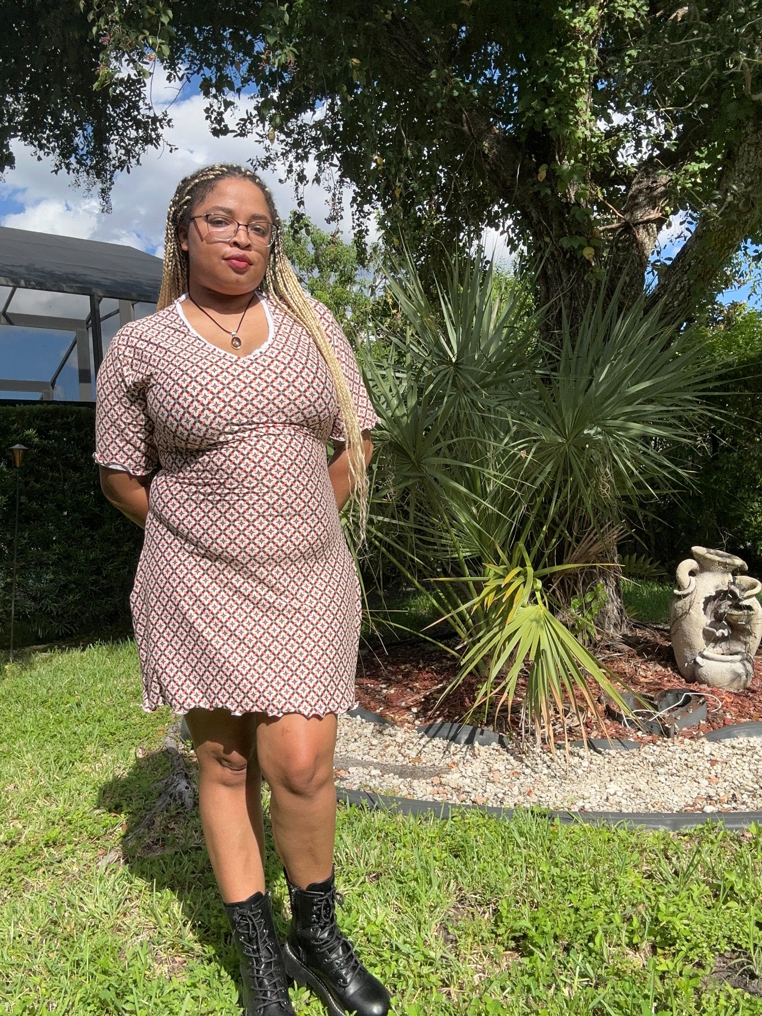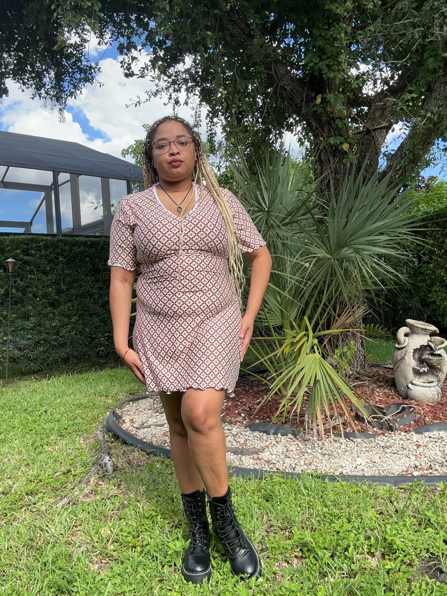 A soft autumn mini dress with a timeless floral-inspired print. Lightweight stretch fabric for all-day comfort. Classic and versatile, perfect for layering or wearing solo. Simple, sweet, and effortlessly wearable.